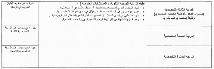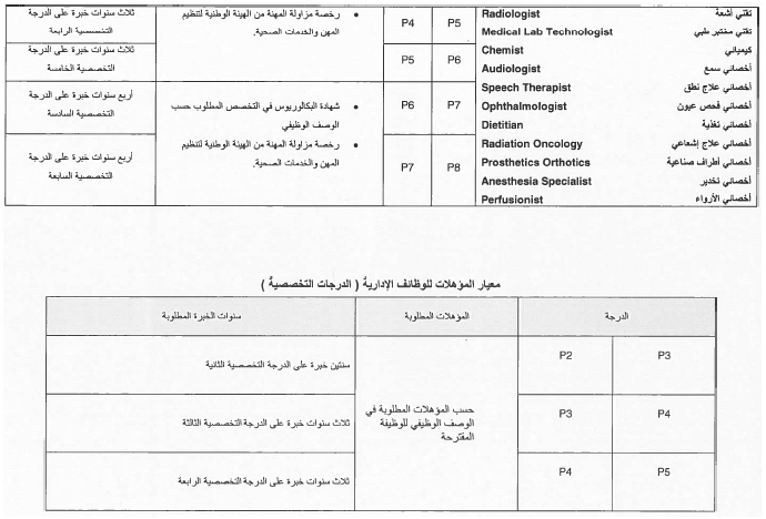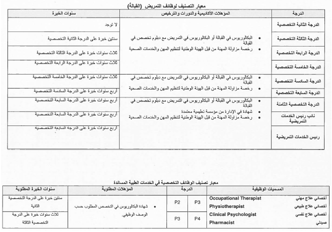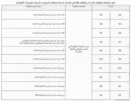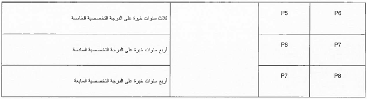 2- أن يكون الموظف قد أمضى في درجته الحالية عدد سنوات الخدمة المطلوبة وفقاً للكوادر والمعايير الوظيفية حسب الجداول المرافقة لهذا القرار.