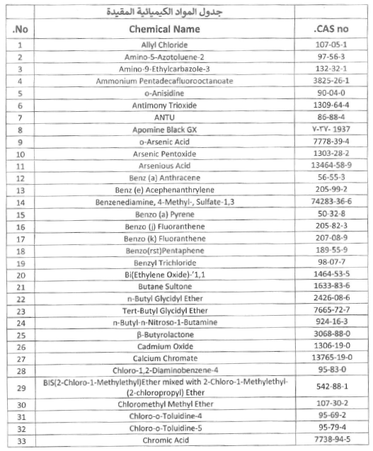 بتحديد المواد الكيميائية المقيّدة المسموح